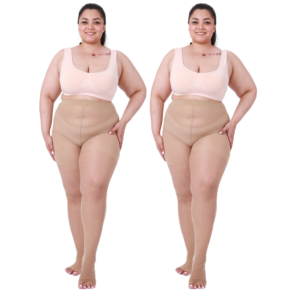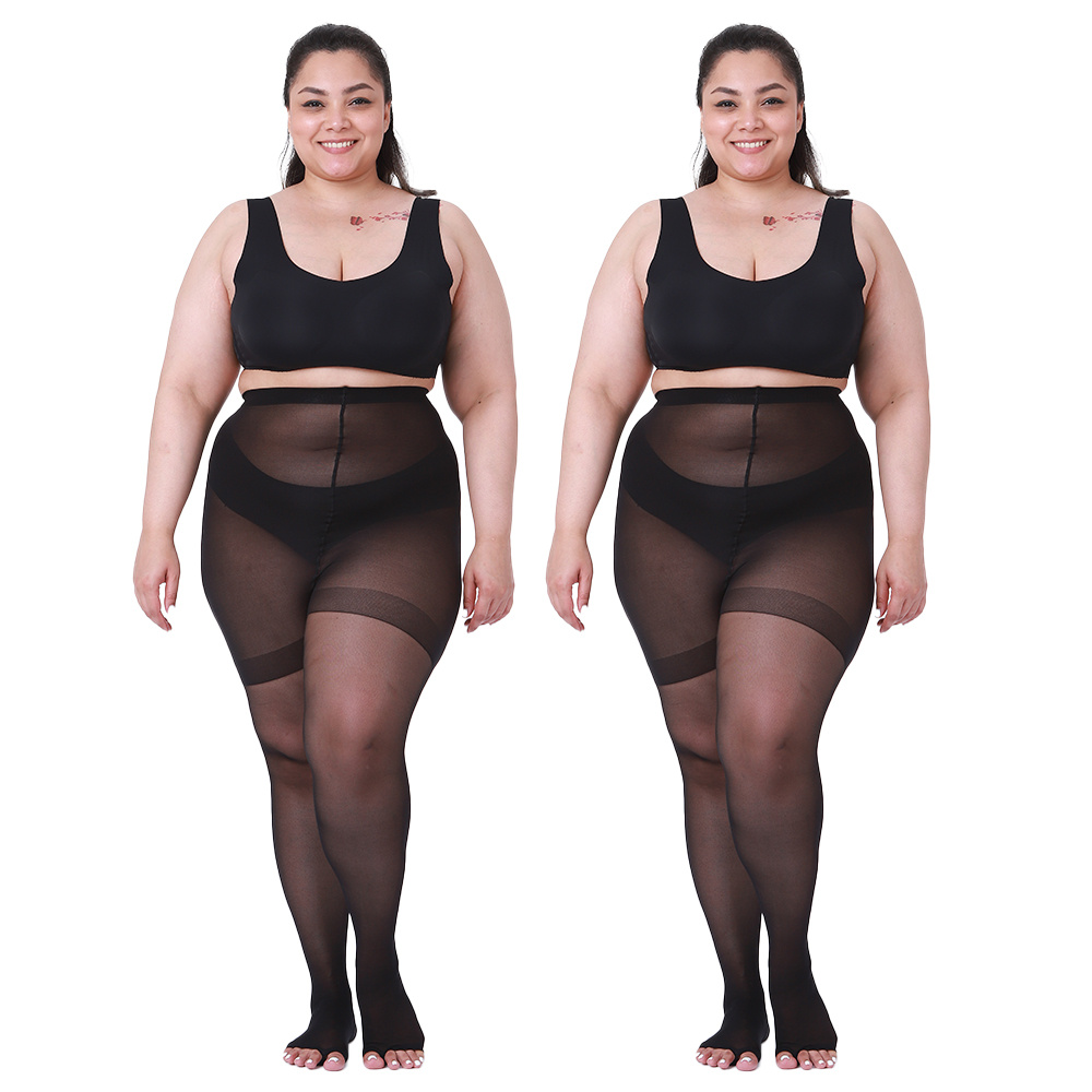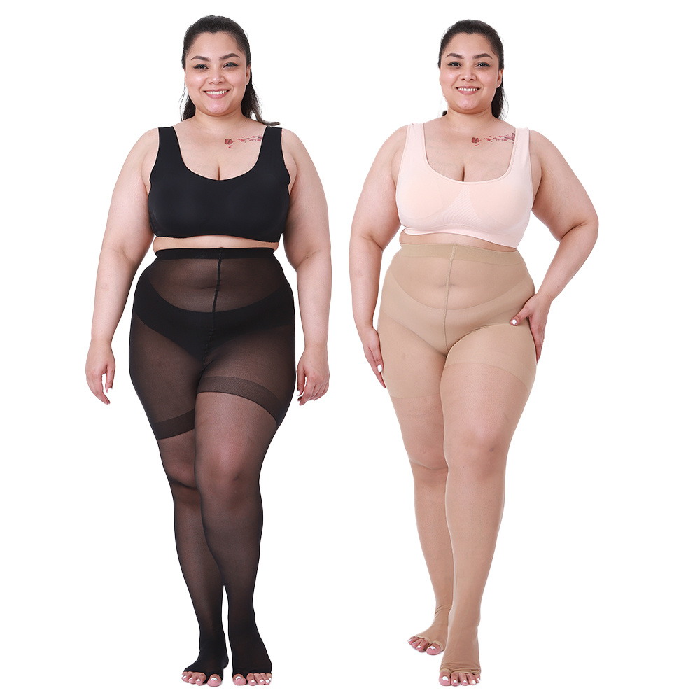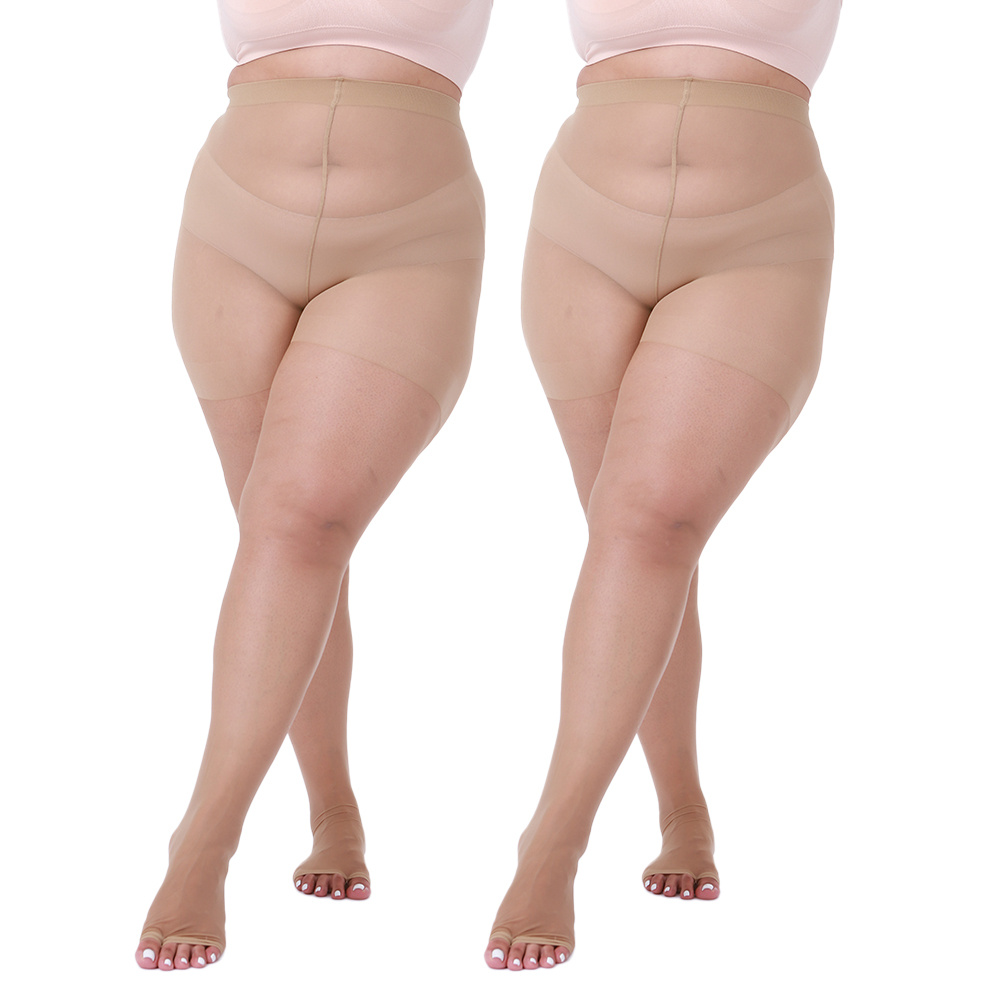 2 Pairs Womens 20D Ultra Toeless Sheer Tights Open Toe Control Top Plus Size Pantyhose