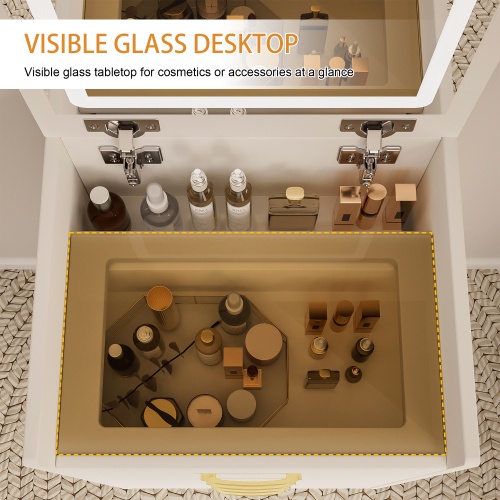 - Glass Desk top:The design of glass visible tabletop allows you to see every cosmetic and jewelry under the desktop at a glance and easily find the cosmetics or jewelry you need.