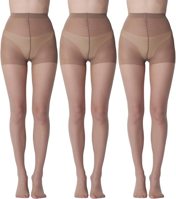 3 Pairs Womens 20D Ultra Sheer Tights With Control Top Run Resistant Pantyhose
