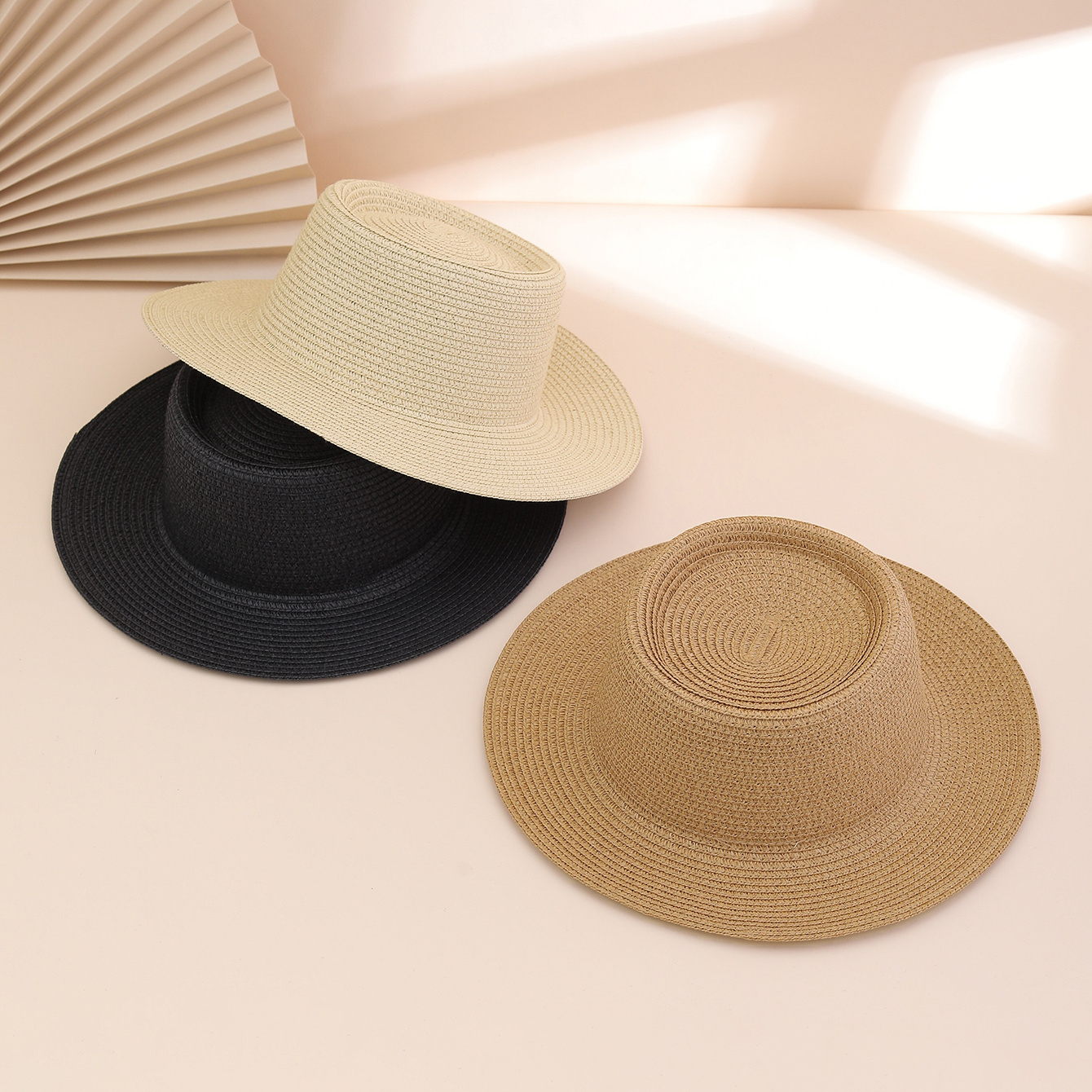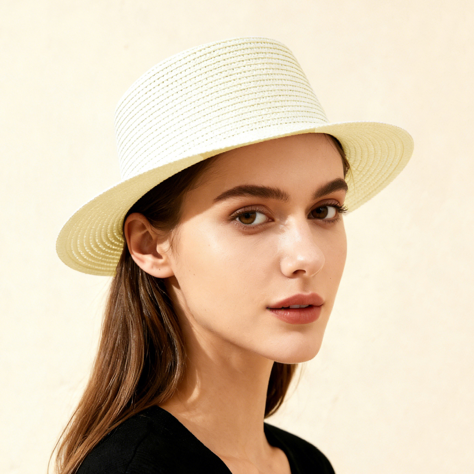 A stylish and versatile sun hat for ladies, featuring a solid color broad brim and foldable concave top. Perfect for outdoor travel, beach vacations.