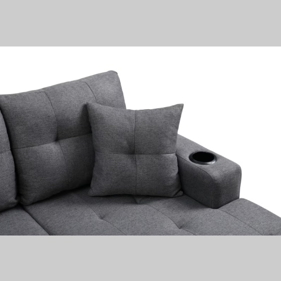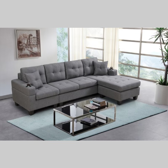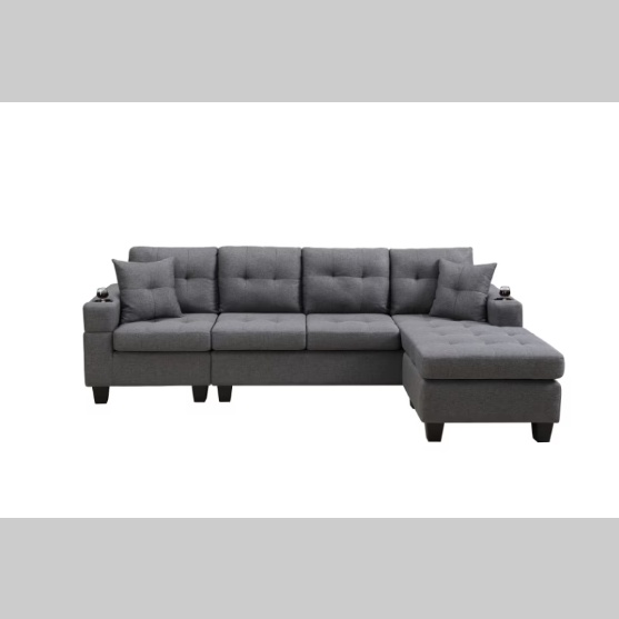 LY-022 GREY COMPRESSION SOFA Combining Chaise Longue With 3-seater, Wood Grain Chenille Fabric, Full Sponge Compression Sofa,combined Sofa With 4 Pillows For Living Home Furniture Apartment