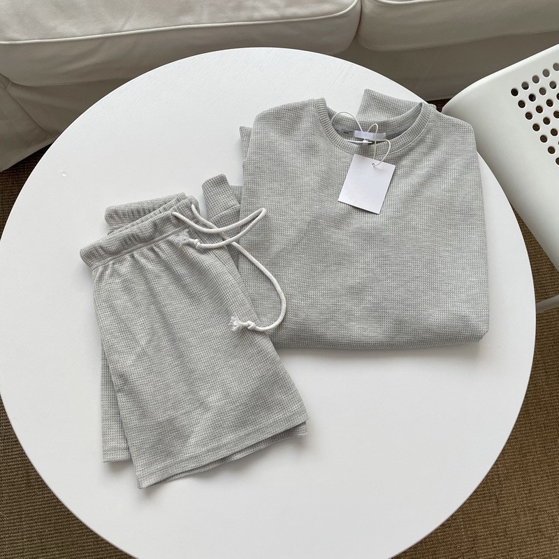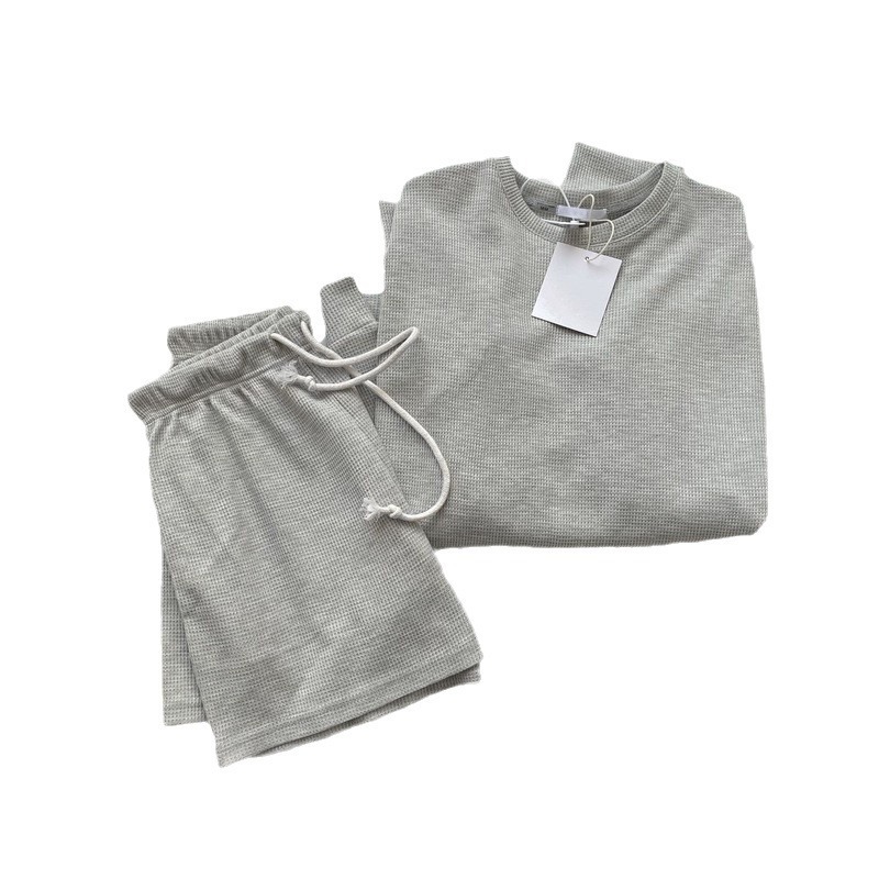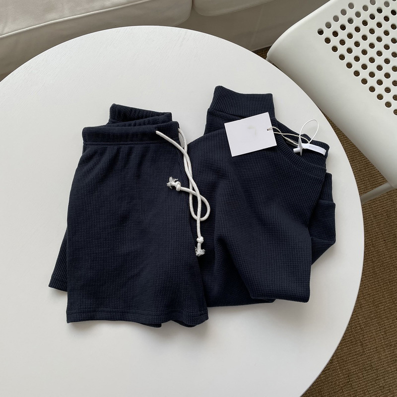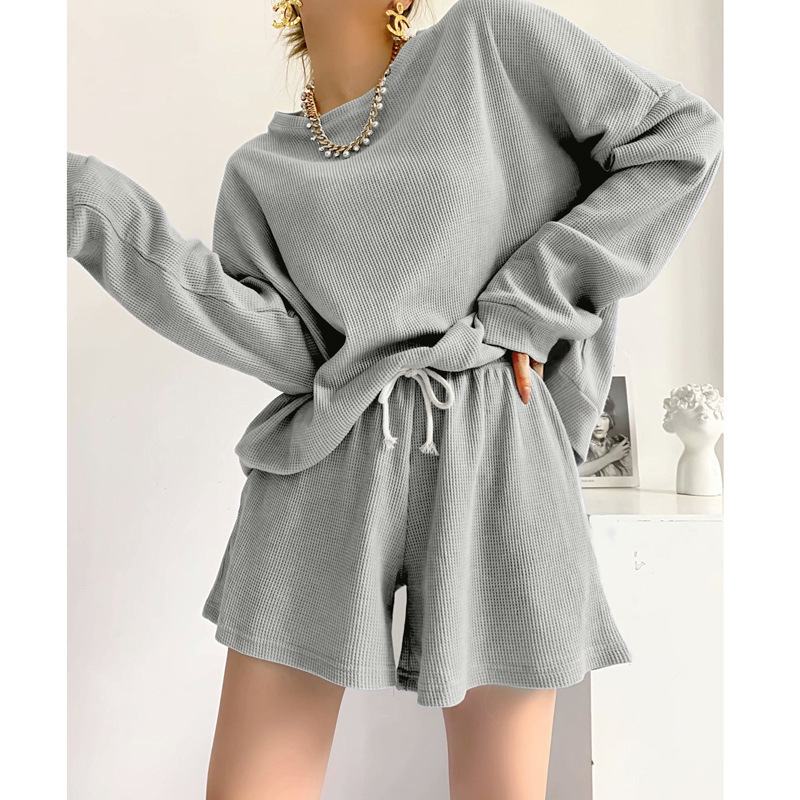 Knitted Long-sleeve Top And Shorts Pullover Vintage Set With Pockets