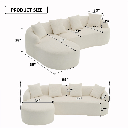 - L Sofa with wider armrests, deeper seat depth, and raised backrest provide a more comfortable seating experience. The 4 small pillows included for free can be cradled in your arms or leaned against your back, allowing you and your family to relax even more. The super wide sofa gives every part of your body plenty of space to relax.