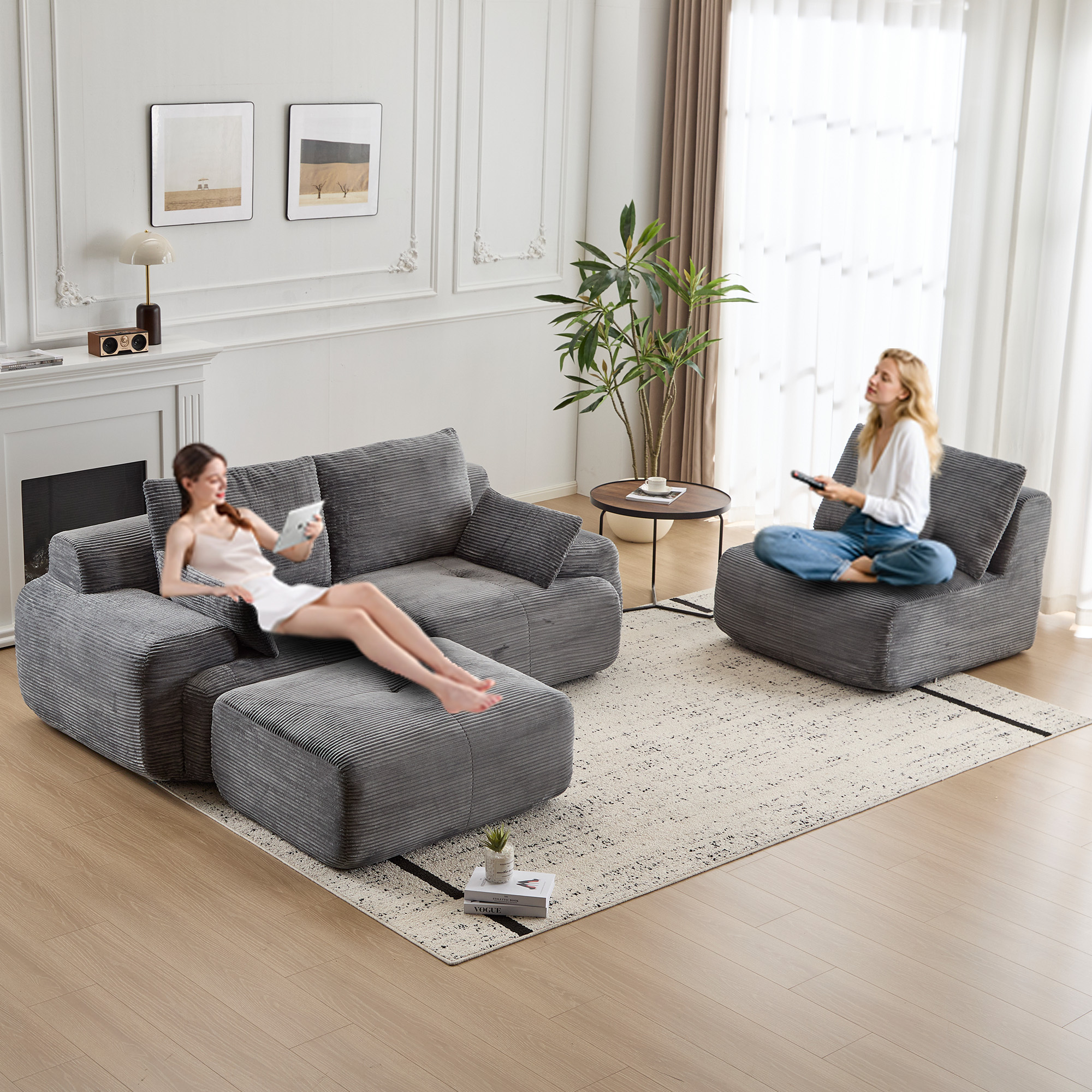 Product Name:Modern Memory Foam Compressed Sofa,Large Sectional Couches for Living Room,Pet-Friendly Cloud Modular Sectional Sofa,Corduroy Fabric,Extra Deep Loveseat,No Assembly required,GREY