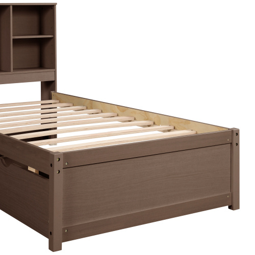 Product Name:Modern Twin Size Bed Frame With Built-in USB Port on Bookcase Headboard and 2 Drawers for Walnut Color