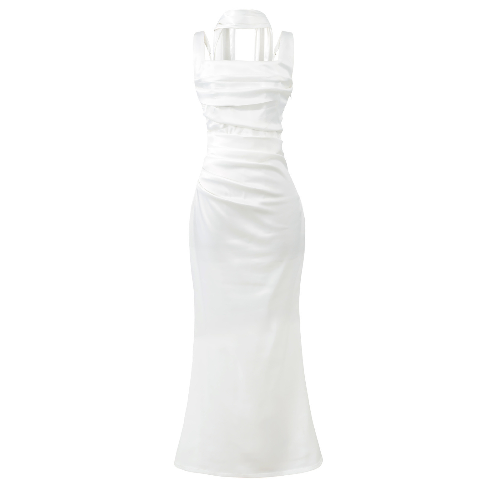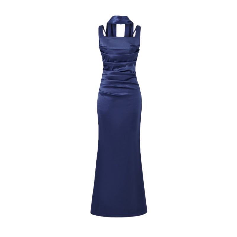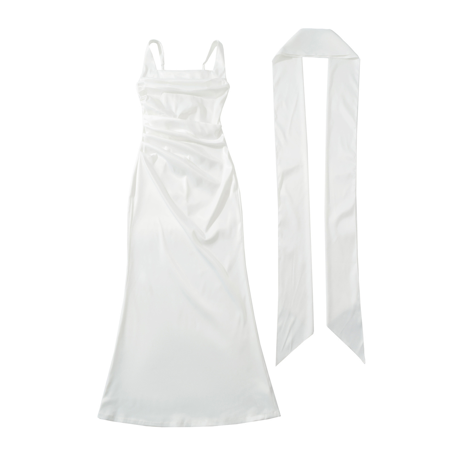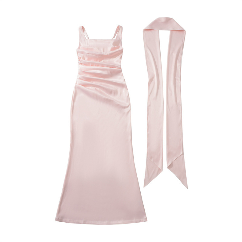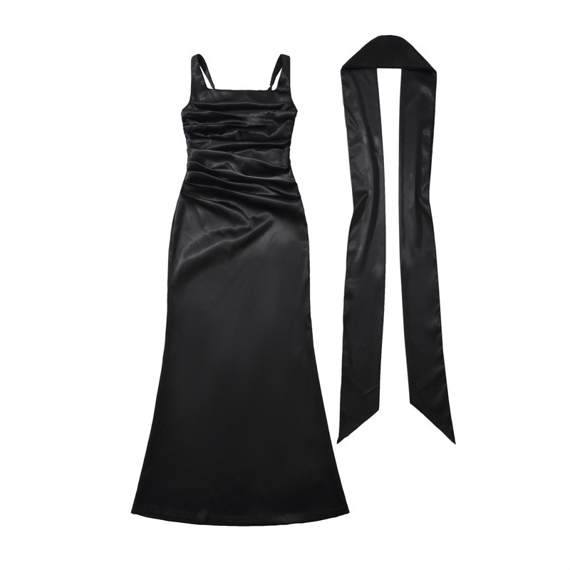 Square Neckline Collarbone-baring Strapless Figure-hugging Pleated Waist-cinching Sheath Skirt