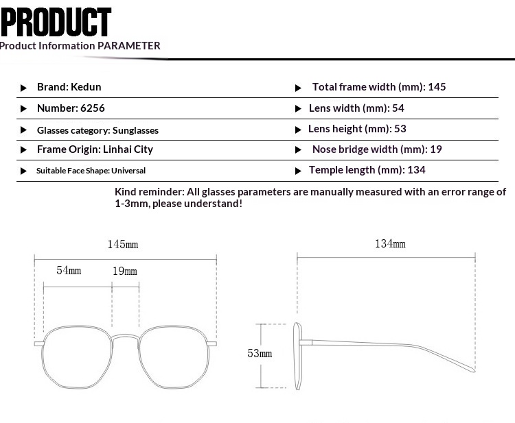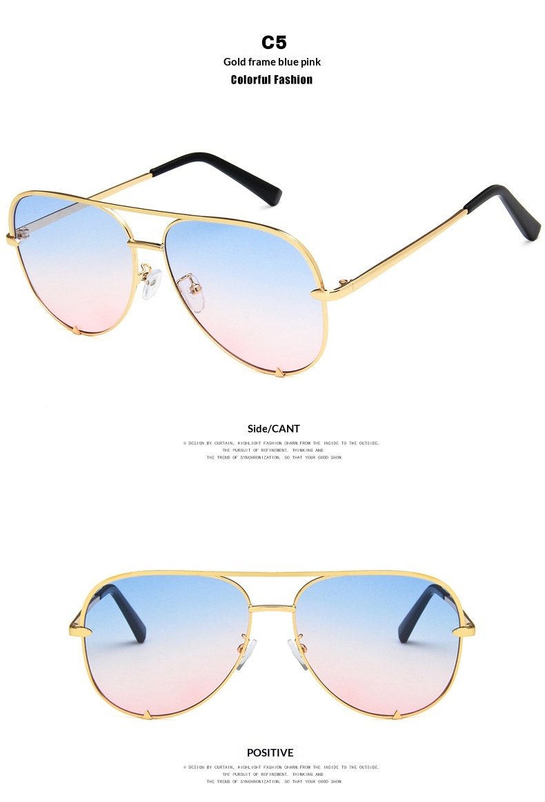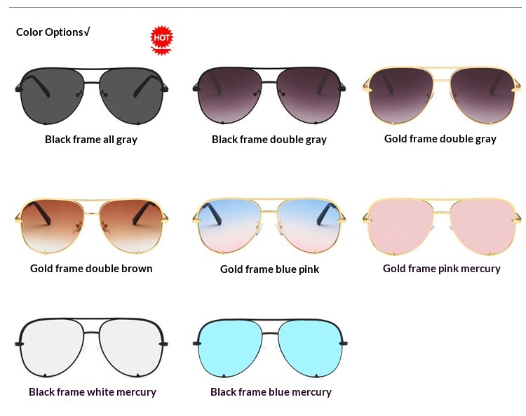 Colors: C1 – Black Frame All Gray, C2 – Black Frame Dual Gray, C3 – Gold Frame Dual Gray, C4 – Gold Frame Dual Brown, C5 – Gold Frame Blue-Pink, C6 – Gold Frame Pink Coating, Black Frame White Mirror, Black Frame Blue Mirror