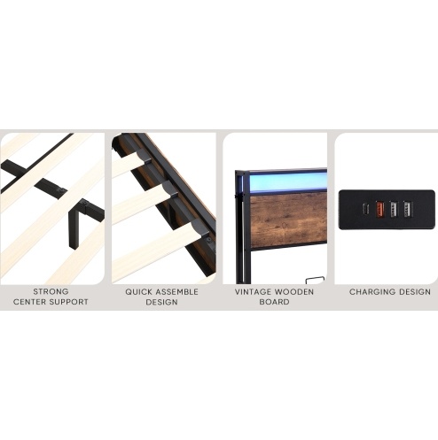 - Modern Design with Customizable LED Lighting: Experience the perfect fusion of style and functionality with our rustic brown bed frame, complemented by stunning LED lighting. You can create the ideal ambiance to match your mood and style with a choice of 16 million colors and customizable settings via remote or app control. Adjust color temperature, and brightness, and even sync the lighting with music for a dynamic and immersive experience.