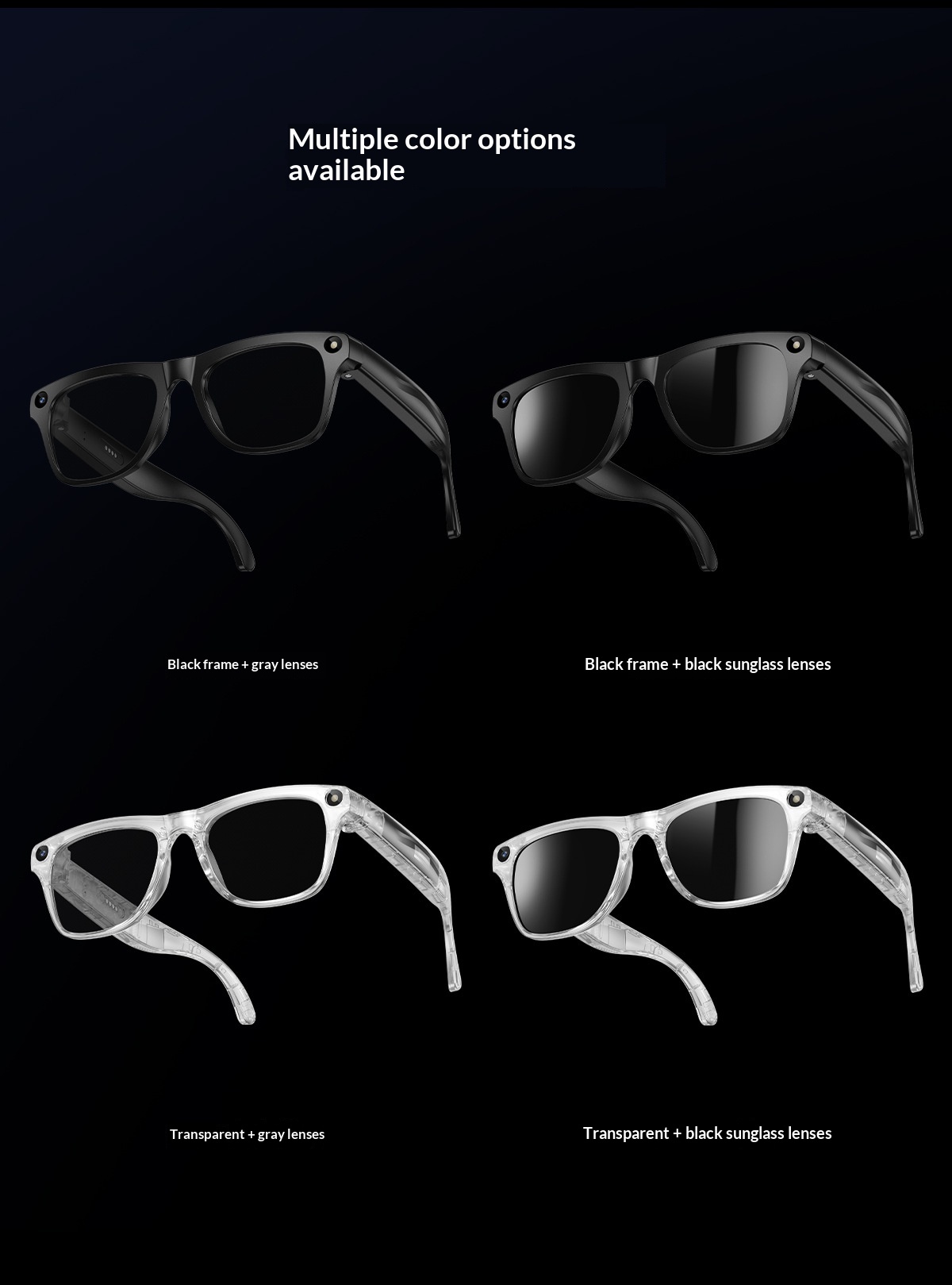 Package Contents: Glasses, Glasses Case, Charging Cable, Cleaning Cloth